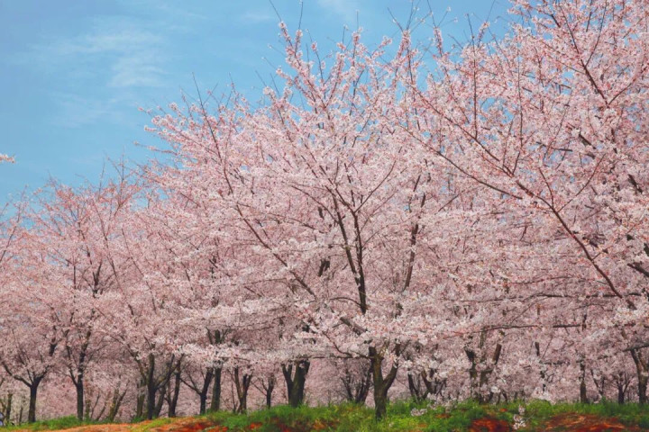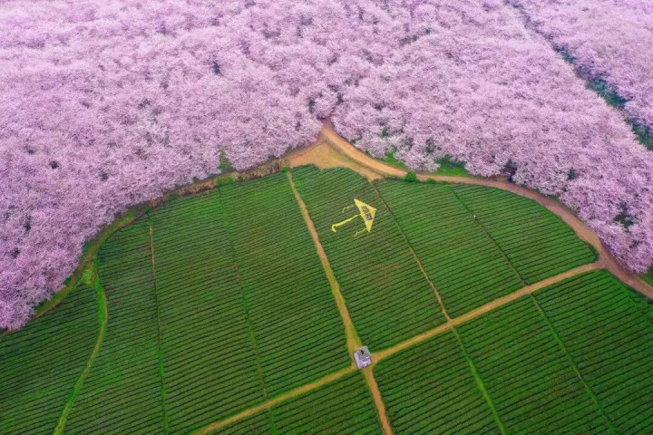 除了万峰林,黔西南的春天还有多种色彩。三月平坝万亩樱花如云似雾,漫步其中宛如置身仙境。穿上汉服在其中拍照,仿佛穿越回古代。
