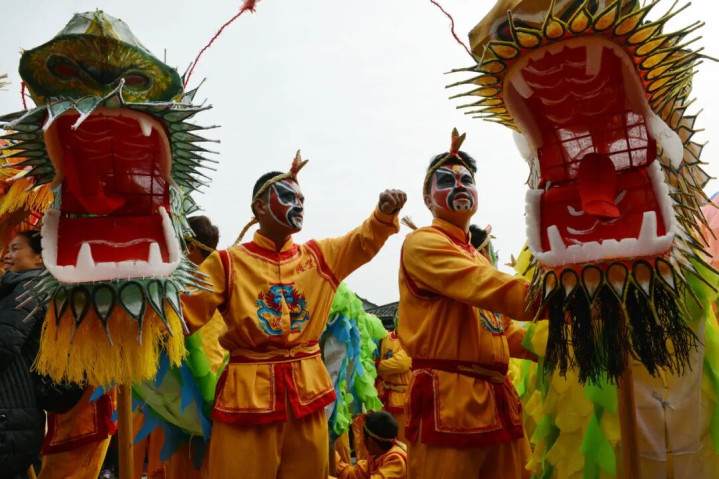 这是一种独特的舞龙形式,舞龙者脸上涂满油彩,龙头、龙身装扮夸张。当龙灯队伍穿梭于古城巷道,游客不仅可以围观,甚至能加入其中,亲身体验画脸谱、舞龙灯的新奇乐趣。