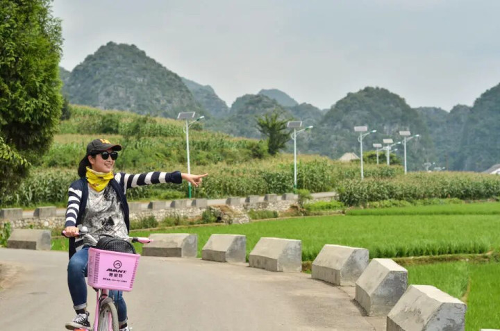 你可以乘坐观光车,从高处俯瞰这幅“峰林花田”的壮美画卷;也可以租一辆自行车,沿着花间步道骑行,让微风吹拂脸颊,轻嗅油菜花的芬芳。