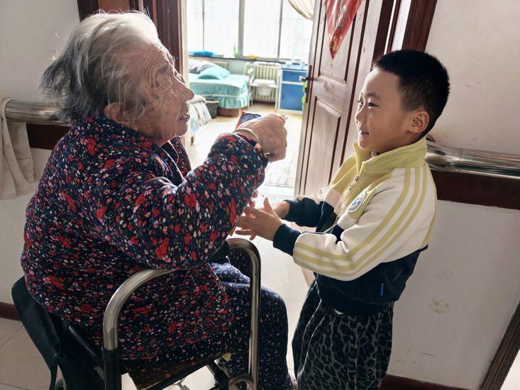 表演结束后,孩子们化身“小小暖心使者”,主动围在老人身边,有的轻声询问生活日常,有的耐心倾听往昔故事,亲昵的互动让老人们脸上洋溢着欣慰的笑容,整个公寓充满欢声笑语,动人场景令人动容。