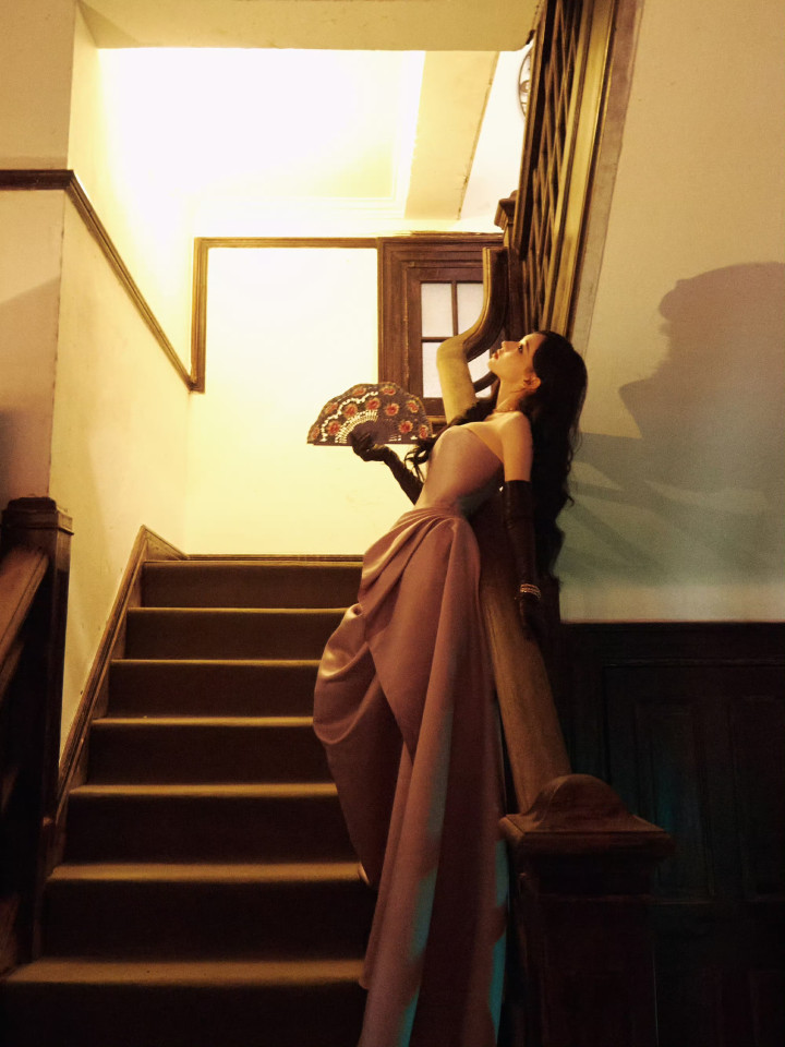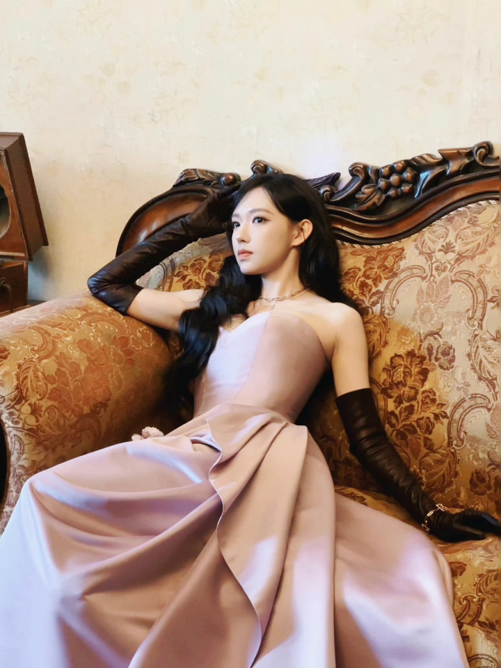 程潇解锁复古新造型! 抹胸长裙勾勒好身材, 美到自带柔光滤镜