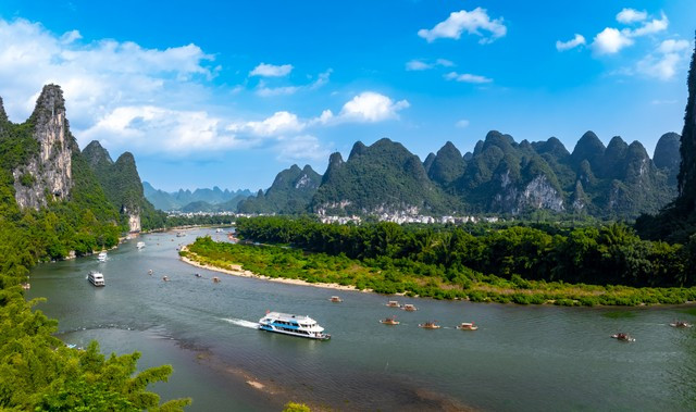 4. 广西桂林山水:中国南方喀斯特地貌的杰出代表,漓江是其灵魂,江水清澈,两岸奇峰各异,风景如画。