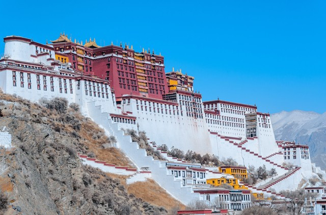 5. 西藏布达拉宫:坐落在拉萨市区西北的红山上,是一座集宫殿、城堡和寺院于一体的宏伟建筑,也是世界上海拔最高、最宏伟的宫殿之一。