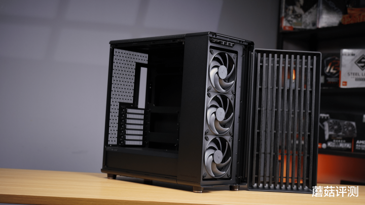 ▼机箱是分形工艺North XL ME永夜黑钢化玻璃板,机箱前部是开放式的前方气流设计,进风超级通畅。
