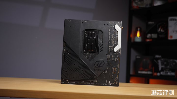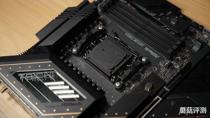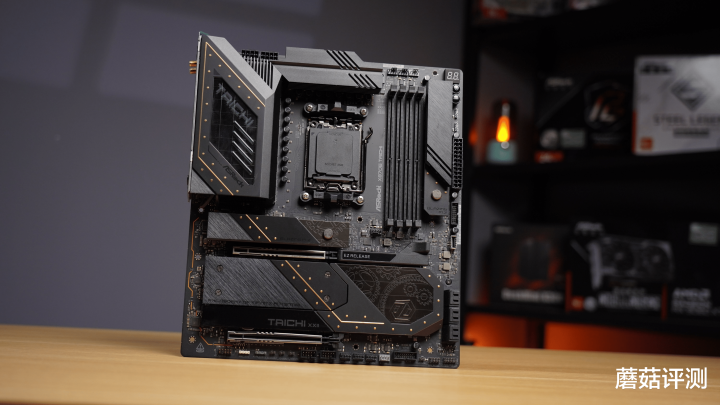▼主板是华擎的X870E太极,这块主板的颜值非常漂亮,正面覆盖有大面积的金属散热件,并在主板的供电散热件和底部部分设计有RGB灯效,让整机氛围感更好。