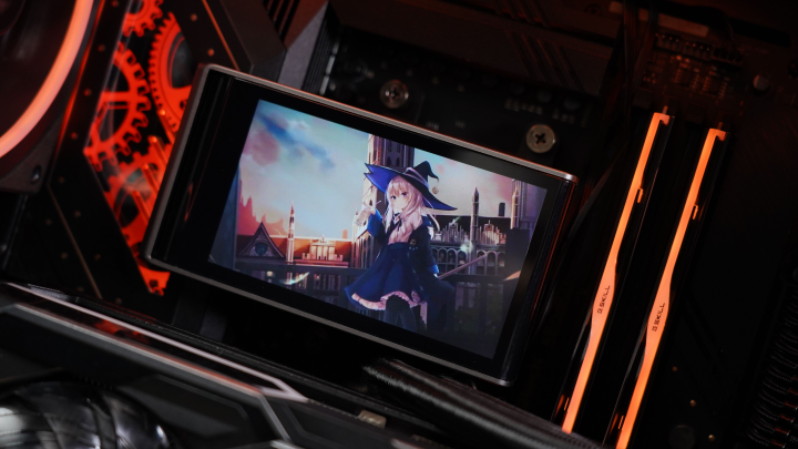 ▼水冷头顶部标配一块4.5英寸的全视角大屏幕,显示内容丰富,效果震撼。搭配特质的阻尼铰链,可以实现不同角度的显示效果,搭配整机更轻松。