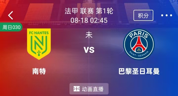 周日 030 法甲 南特VS巴黎圣日尔曼