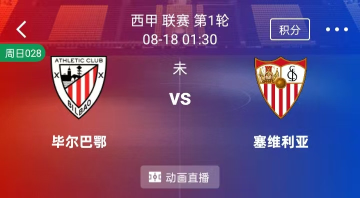 周日 028 西甲 毕尔巴鄂竞技VS塞维利亚