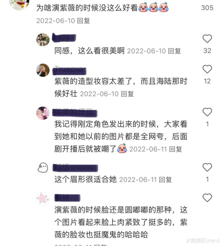 说回海陆,明明头很小身材比例不错,但因为《新还珠格格》妆造拉胯的原因,观众对她的印象还是黑、壮。《新还珠格格》里海陆饰演的紫薇被网友形容和饰演尔康的李佳航共用一张脸,CP感好弱,服化道饱和度很高,主演们明明不丑但到剧里颜值都被拉低了。